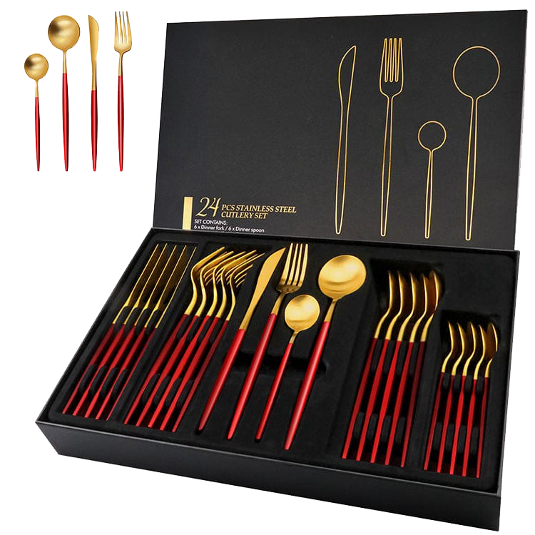 24PC. CUTLERY SET(18/0) The parts are entirely made of stainless steel, highly durable, maintain their original characteristics, preserving the beauty, hygiene and durability of the material. The set has a gloss finish and it is suitable for daily use, they blend in with any environment. The set can be washed daily in the dishwasher.